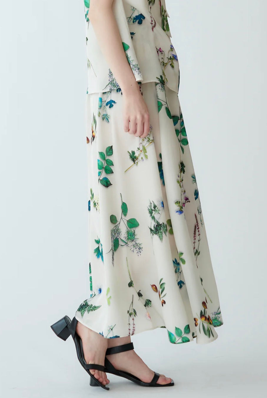 ボタニカルプリントが春の装いに彩を添えるフレアスカート。