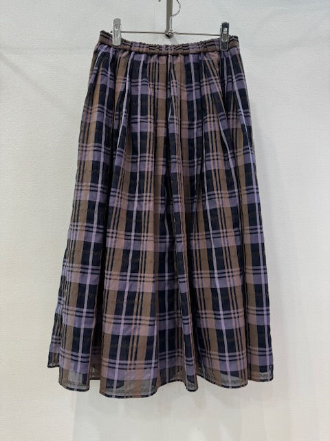 すっきりとしたウエストからギャザーでふんわり広がるシルエットが魅力のスカート。 大きめのマドラスチェックを控えめな配色で仕上げ、上品な印象にまとめました。 素材軽やかでさらっとした肌触りの素材です。 デイリー使いからちょっとしたお出かけにも幅広く活躍します。